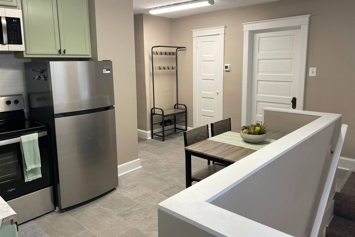 Please note that the apartment is located on the second floor and requires going up a flight of stairs. Additionally, the unit is situated above a business office that operates Monday through Friday from 8:00 a.m. to 3:00 p.m. While evenings and weekends are generally quiet, guests should be aware of daytime activity during business hours.